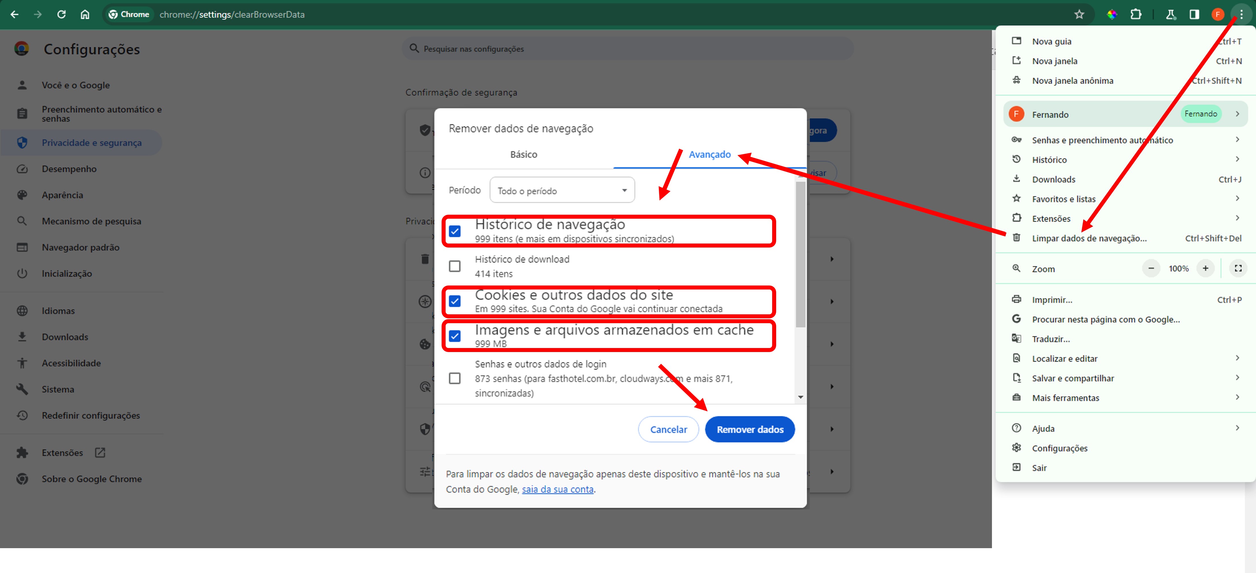 O FastHotel (assim como qualquer outro site) pode apresentar comportamento inadequado quando há desatualização do cache.