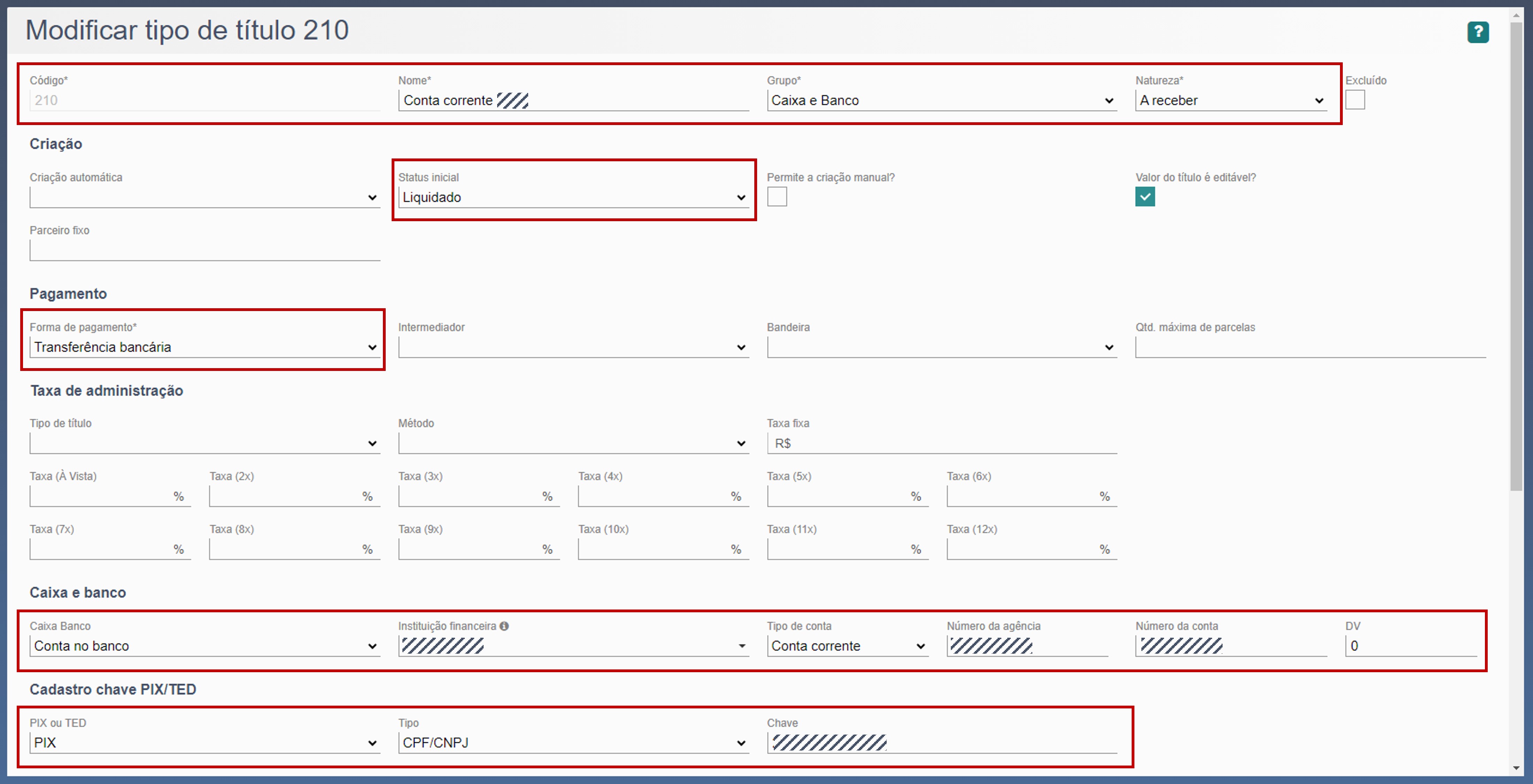 Ou, se quiser alterar um tipo de título, em Cadastros > Finanças > Tipo de Título, clique em um tipo de título.
