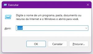 2) Feche o navegador Chrome + pressione as teclas windows + R, digite cmd e pressione enter (ou clique em OK)